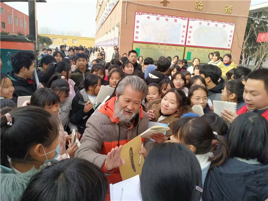 活動儀式上,孫培忠發(fā)表了熱情洋溢的講話。他說,書畫是中華民族傳統(tǒng)文化重要組成部分,通過書畫名家進(jìn)校園,讓學(xué)生近距離接觸書畫作品,對于培養(yǎng)學(xué)生的書寫能力、審美能力,豐富中小學(xué)校文化生活,促進(jìn)全面發(fā)展具有十分重要的意義。希望以這次活動為契機(jī),把書畫進(jìn)校園活動組織好、輻射好,為教師、學(xué)生和書畫家搭建好共同學(xué)習(xí)與交流的平臺,讓傳統(tǒng)文化走進(jìn)孩子們的心里,讓書畫藝術(shù)種子在學(xué)校生根發(fā)芽,開花結(jié)果。