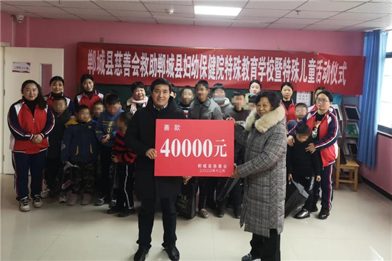 12月29日,鄲城縣慈善會(huì)會(huì)長(zhǎng)趙愛(ài)梅、常務(wù)副會(huì)長(zhǎng)趙如軒、副會(huì)長(zhǎng)朱山峰、秘書(shū)長(zhǎng)代文一行4人,到鄲城縣婦幼保健院特殊教育學(xué)校對(duì)特殊兒童進(jìn)行慈善捐助。