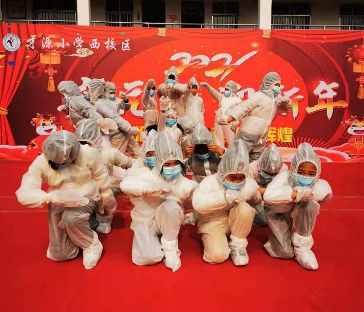 在該縣才源小學(xué)西校區(qū),三年級(jí)三班、四班、六班、八班合作編排了《與時(shí)間賽跑》情景劇,充分展示了在抗擊疫情期間,醫(yī)護(hù)人員奮勇當(dāng)先的責(zé)任擔(dān)當(dāng),逆行出征的義無反顧,風(fēng)雨兼程的無私奉獻(xiàn)。舞臺(tái)上,孩子們的精彩表演,獲得了陣陣掌聲。