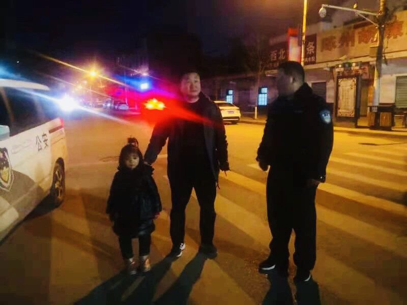 昨日20時(shí)許,鄲城公安局食藥環(huán)大隊(duì)副中隊(duì)長(zhǎng)郭海峰和協(xié)警王峰在分包路段幸福路巡邏時(shí),發(fā)現(xiàn)一名4歲左右的小女孩獨(dú)自一人橫穿馬路,沒(méi)有大人陪同,存在嚴(yán)重安全隱患。