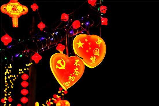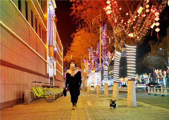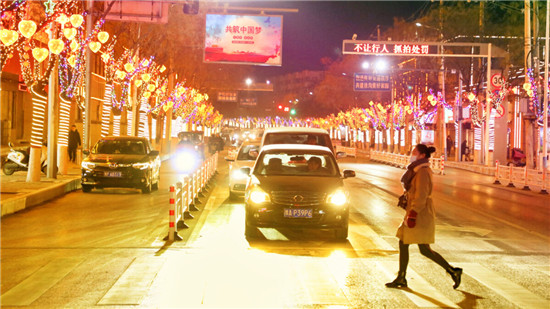 1月7日晚,扶溝縣城桐丘路,放眼望去,整條街道裝飾得色彩繽斕,形式各異的燈飾流光溢彩,美不勝收。景觀樹搖身一變,成了五彩繽紛的“星星樹”,一串串紅燈籠高高掛起,一顆顆“中國心”錯(cuò)落有致,格外引人注目,引得路過的市民紛紛駐足拍照留念。