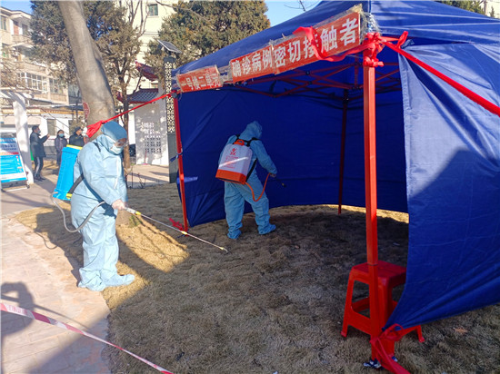 演練開始后,公安部門按照新冠肺炎疫情公共衛(wèi)生應(yīng)急處置預(yù)案要求,立即下達(dá)指令,派出所民警到達(dá)現(xiàn)場維護(hù)秩序,區(qū)域控制,拉警戒線,嚴(yán)格管控人員,禁止一切車輛和人員通行。街道辦事處迅速組織社區(qū)干部及社區(qū)網(wǎng)格員開展核酸檢測和宣傳動員工作,根據(jù)應(yīng)急預(yù)案分工開展群眾宣傳動員工作,并對患者居住單元電梯樓道等公共區(qū)域進(jìn)行消毒。工作人員到確診患者家對2名密切接觸者進(jìn)行流調(diào)和健康教育,將密切接觸者用120負(fù)壓救護(hù)車單人單車轉(zhuǎn)運(yùn)至集中醫(yī)學(xué)隔離觀察點(diǎn),對確診病例家庭環(huán)境進(jìn)行采樣和消殺。
