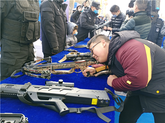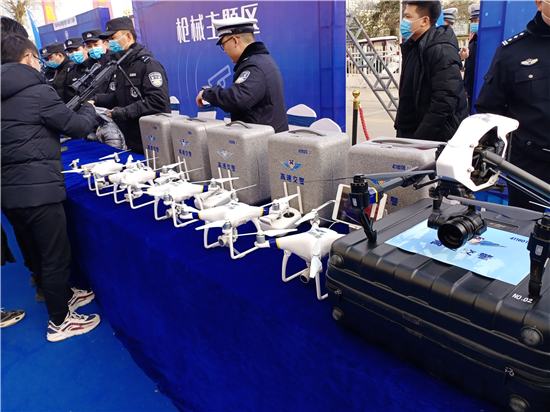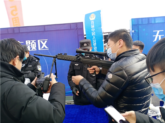 活動現(xiàn)場設置了“反假幣主題區(qū)”“消防主題區(qū)”“防電詐主題區(qū)”“禁毒主題區(qū)”“互動區(qū)”等形式多樣的功能展示區(qū),現(xiàn)場接受群眾咨詢,與市民深度互動,讓市民近距離體驗、全面感受人民警察的日常工作。除此之外,民警還進行了槍械展示、無人機展示等內(nèi)容。