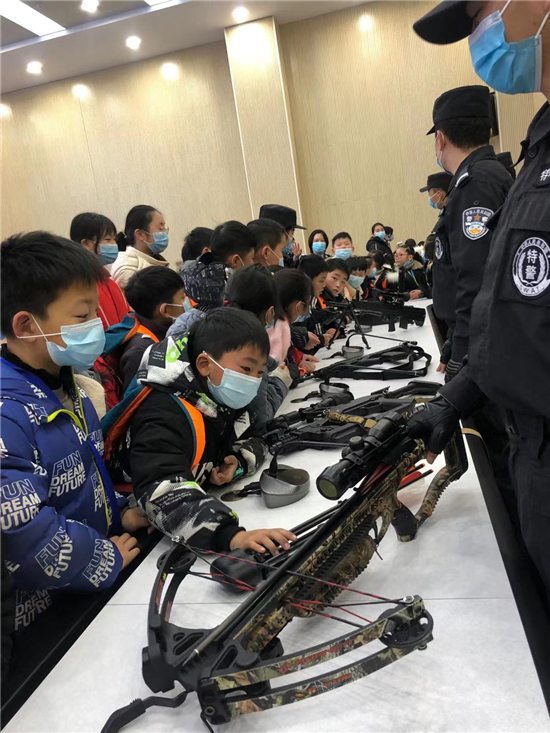 在指揮中心大廳,小記者們還有序參觀(guān)了現(xiàn)場(chǎng)展示的特殊警用裝備。除了手槍外,還有沖鋒槍、狙擊步槍、激光炫目槍和強(qiáng)力弓弩等。市公安局特警支隊(duì)民警向小記者們介紹了各種槍支及裝備的性能和使用方式,并邀請(qǐng)小記者觸摸一把警用槍械。