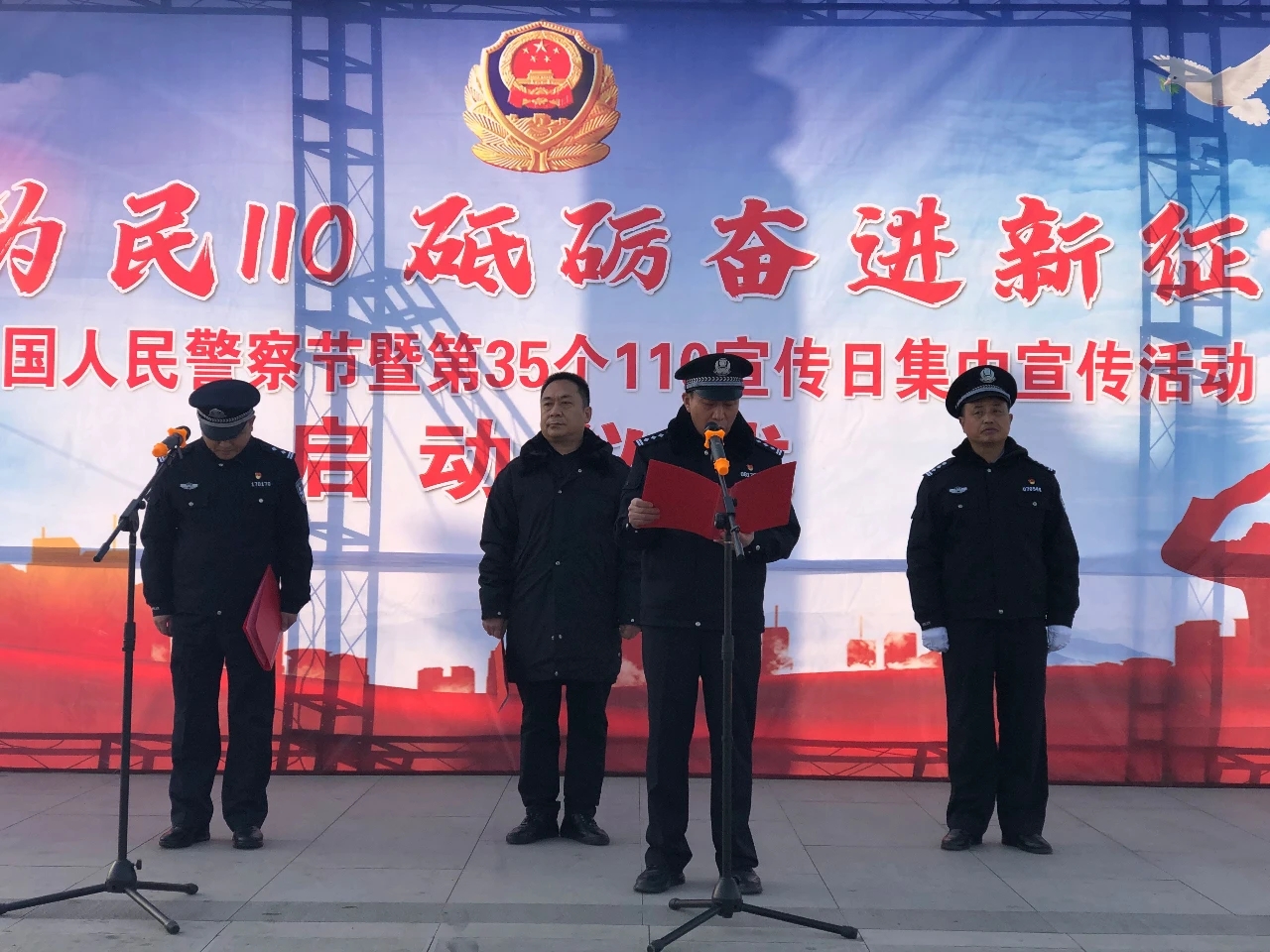 為慶祝首屆中國人民警察節(jié),迎接全國第35個“110宣傳日”,在全社會營造濃厚宣傳氛圍。1月10日上午,鹿邑縣公安局在弘道苑廣場舉辦首屆人民警察節(jié)暨110宣傳日集中宣傳活動??h委常委、政法委書記張國慶,縣政府副縣長、公安局長任金瑞出席活動并講話,縣局黨委委員、民警代表,12345公眾服務(wù)熱線、金融、電信、社會公益組織等單位參加。
