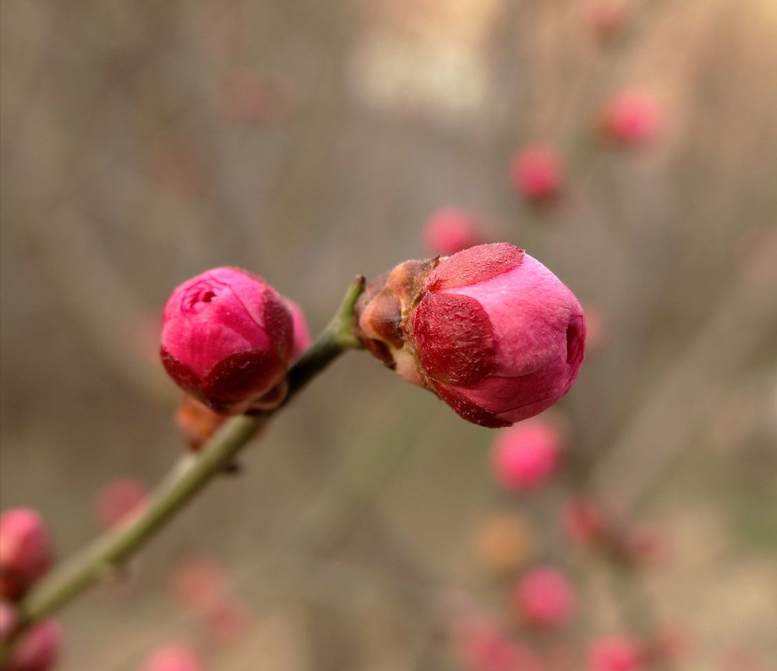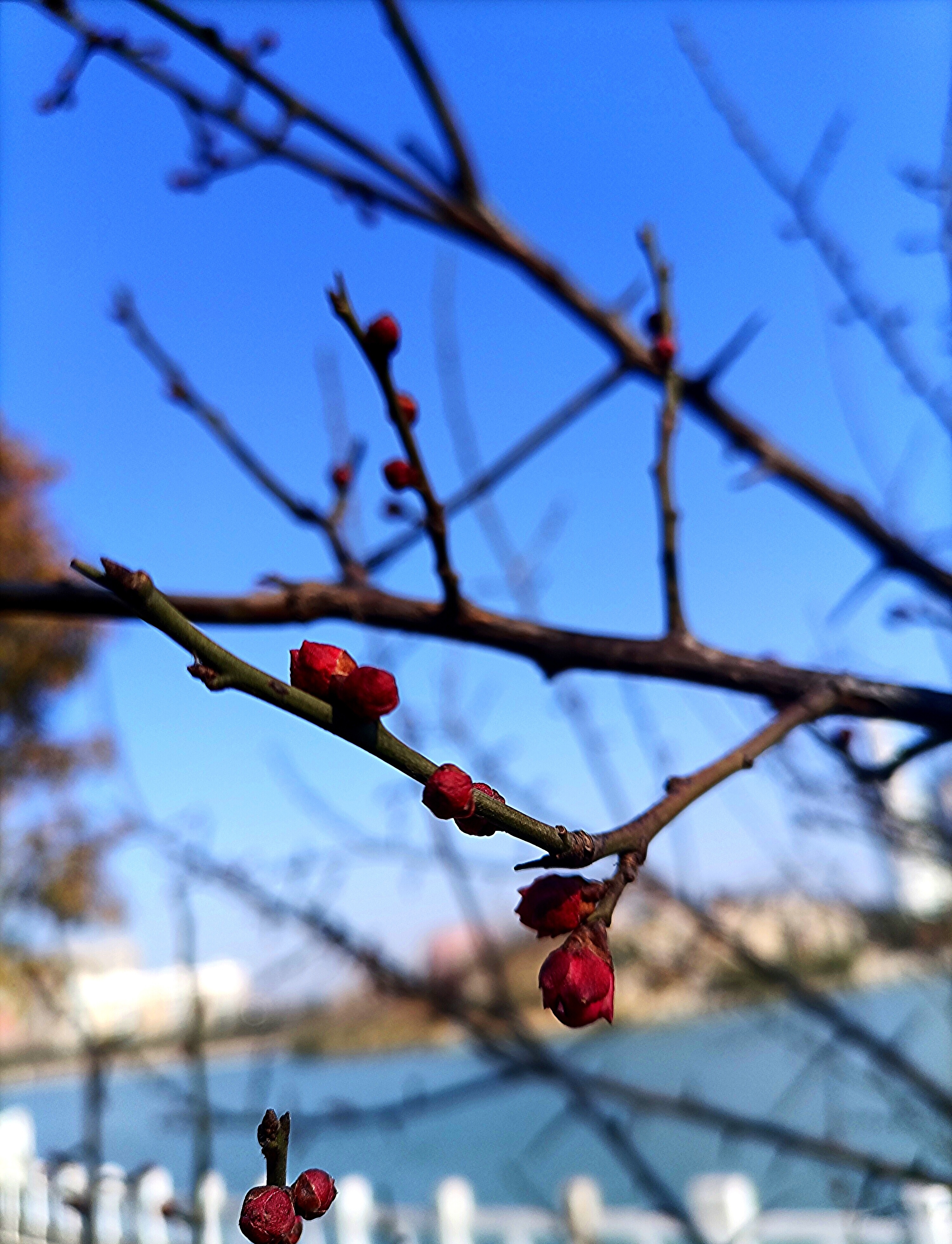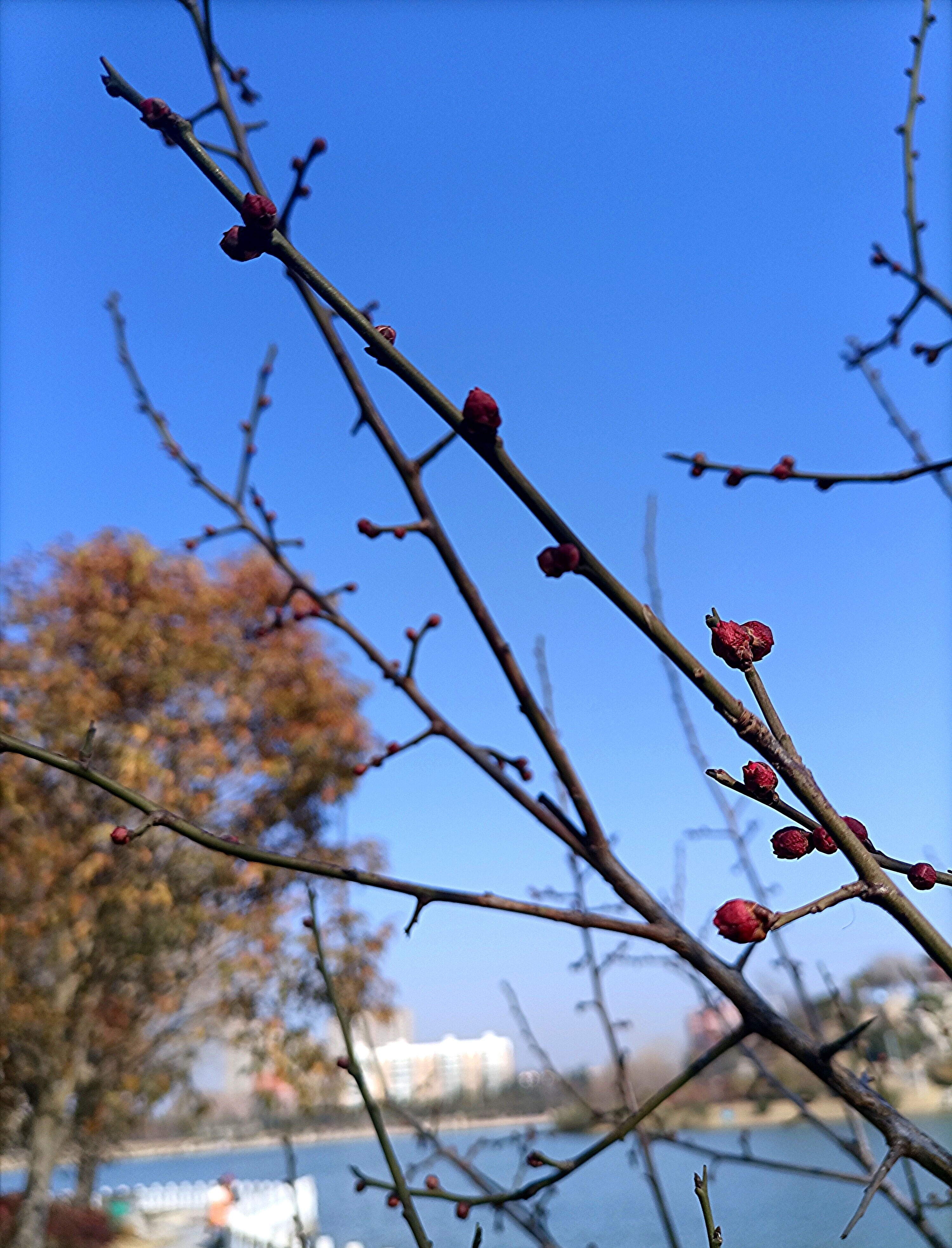 1月14日,我市天氣晴朗,周口公園環(huán)湖步道邊上的梅樹(shù)上,一朵朵含苞待放的梅花嬌艷欲滴,就像一個(gè)個(gè)羞怯的小小舞者,正在為登臺(tái)綻放而積攢力氣和勇氣。
