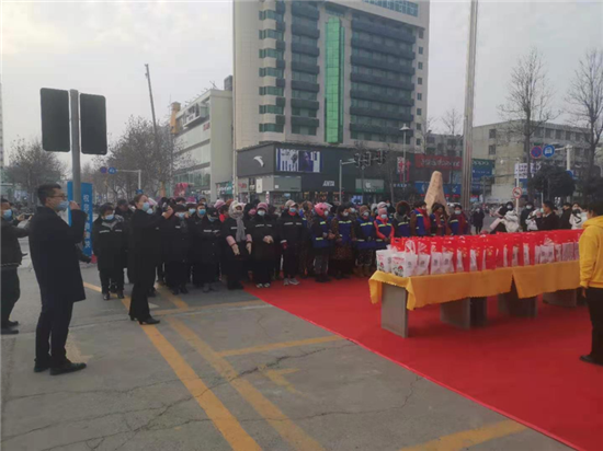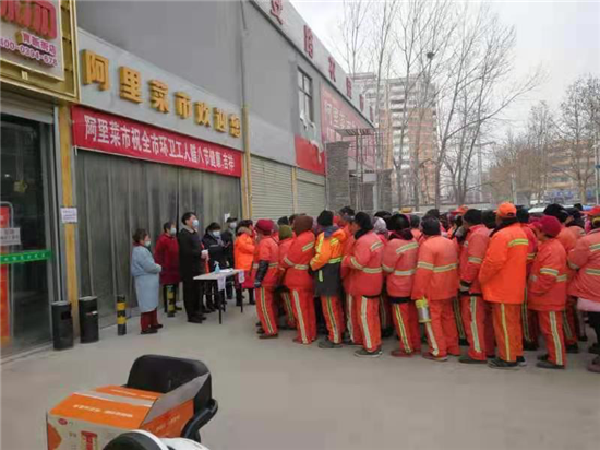 1月20日是傳統(tǒng)節(jié)日臘八節(jié),一大早,中心城區(qū)萬順達廣場就為川盛環(huán)境有限公司的環(huán)衛(wèi)工們準備了臘八粥和毛巾、口罩等防疫物資,阿里市場為每名環(huán)衛(wèi)發(fā)放10元代金券,持劵可在市場內(nèi)消費購物,愛心企業(yè)為辛勤的城市美容師在寒冷的冬季送上了一份暖心的祝福。