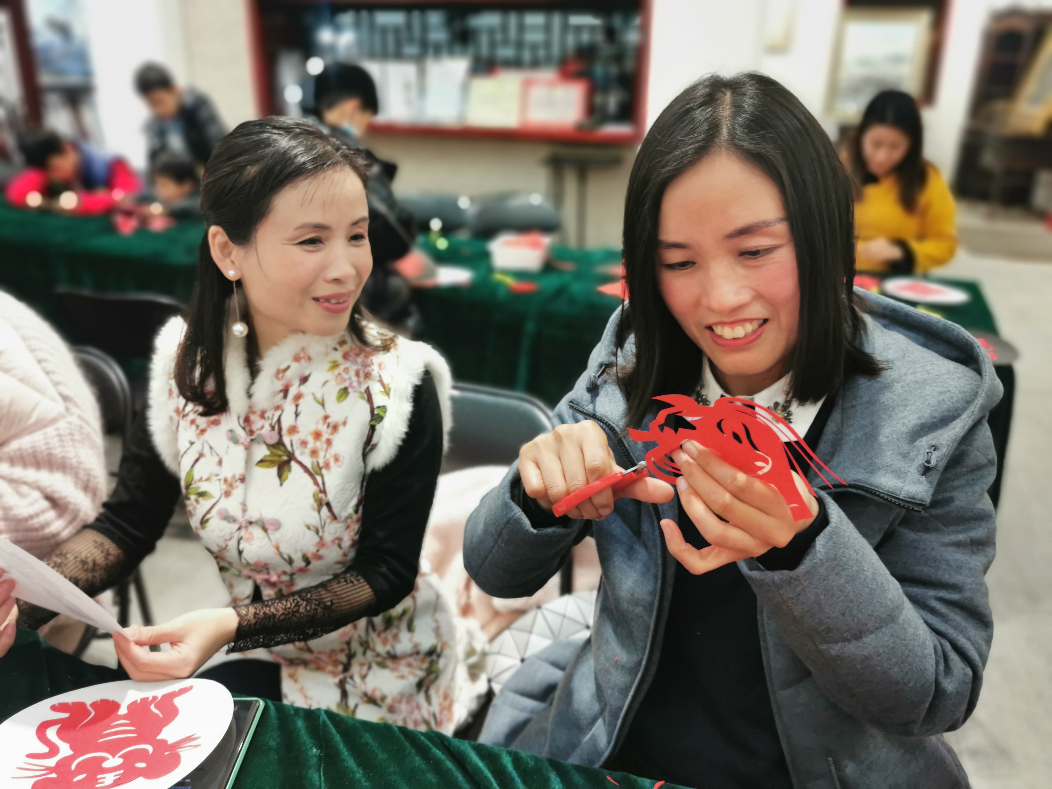 剪紙表現(xiàn)了中華民族淳厚雋永的民情與民風,是中國民間最為流行的一種藝術(shù)形式。為了讓大家學習、傳承這種極具傳統(tǒng)色彩的藝術(shù),蕓雅讀書社組織了學習剪紙的活動?,F(xiàn)場,大家用剪刀在紅紙上剪出福、祿、壽、喜和各種圖案,極具喜慶吉祥的寓意,讓人們感受到了傳統(tǒng)新年的熱鬧。②8
