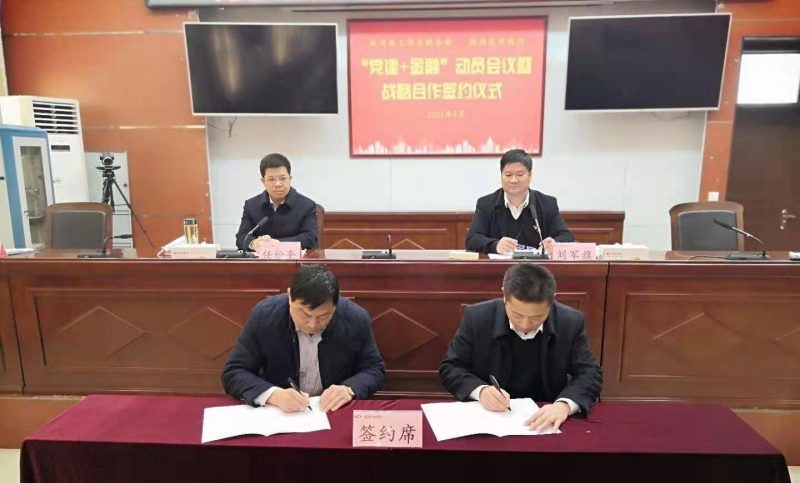 1月26日上午,扶溝縣工商聯(lián)、農商銀行“黨建+金融”動員會議暨戰(zhàn)略合作會議簽約儀式舉行??h委常委、統(tǒng)戰(zhàn)部部長任松奎出席會議并講話。縣工商聯(lián)、縣農商銀行主要負責同志、各鄉(xiāng)鎮(zhèn)(街道)組統(tǒng)委員、縣直行業(yè)商會會長及農商銀行各支行(部)負責人參加會議。