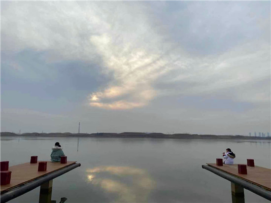 寬闊浩淼的水面、古香古色的船只、天空水中共徘徊的云影、充滿藝術感的建筑、富有趣味的彩色沿湖跑道……初展姿容的永寧湖(原伏羲湖)濕地公園,吸引著眾人的目光和腳步。