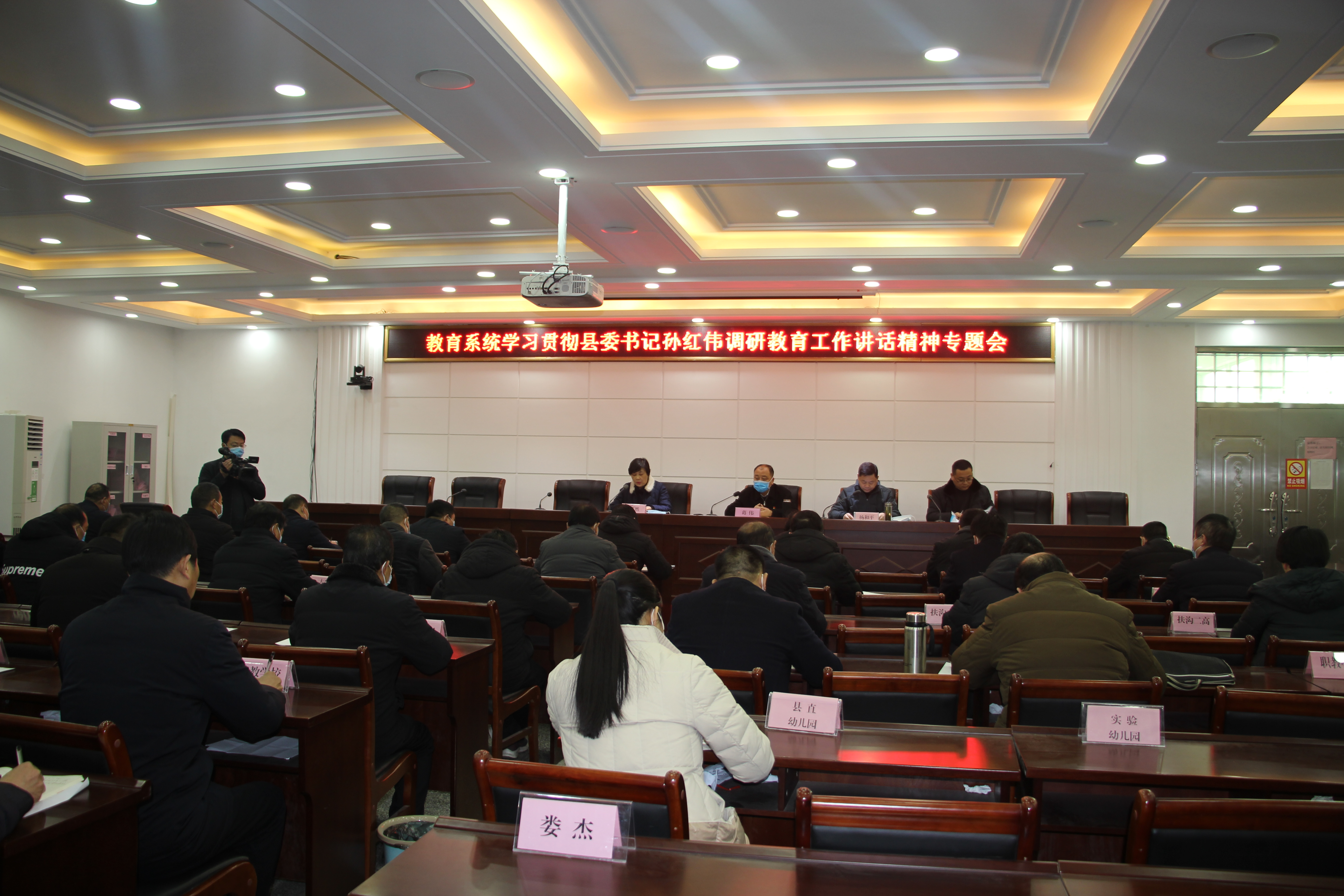 會議領(lǐng)學(xué)了縣委書記孫紅偉調(diào)研教育工作的講話,教體局黨組書記、局長葛偉就深入學(xué)習(xí)貫徹縣委書記孫紅偉調(diào)研教育講話精神,辦好人民滿意的教育講了意見,對當(dāng)前教育重點工作作了安排部署。