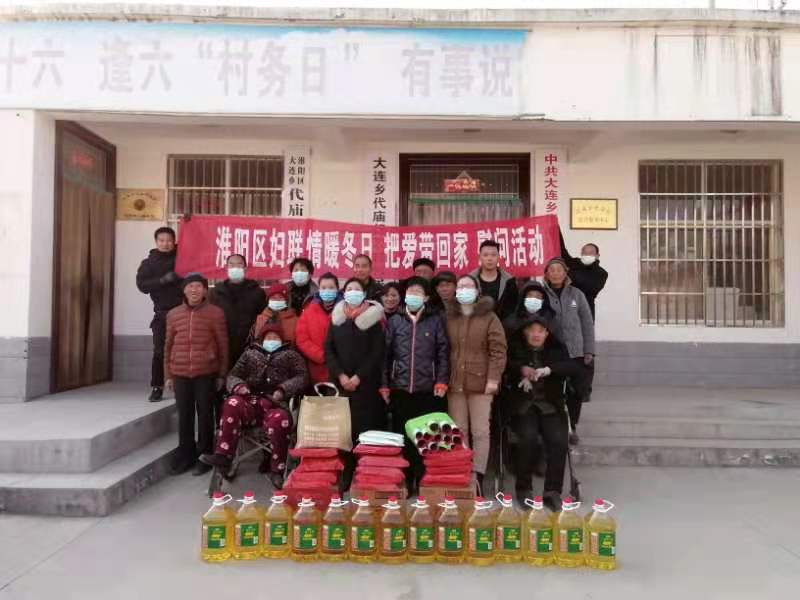 為把省、市婦聯(lián)“關(guān)于做好2021年春節(jié)慰問(wèn)困難婦女兒童和家庭關(guān)愛(ài)幫扶工作的通知”精神落到實(shí)處,2月2日,淮陽(yáng)區(qū)婦聯(lián)帶著威士德教育、市級(jí)巧媳婦就業(yè)創(chuàng)業(yè)示范基地霖海服飾有限公司捐贈(zèng)的愛(ài)心物資,先后深入到大連鄉(xiāng)代廟行政村、產(chǎn)業(yè)集聚區(qū)棠棣行政村開(kāi)展“情暖冬日 把愛(ài)帶回家”走訪慰問(wèn)活動(dòng),為14戶(hù)貧困婦女、留守兒童、困難黨員等家庭送去米、面、口罩、春聯(lián)等生活用品,并向他們送上新年的問(wèn)候和祝福。