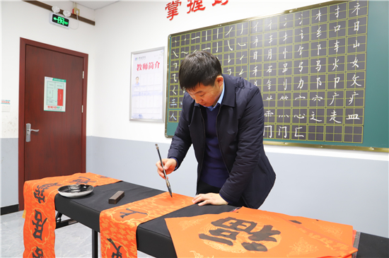 2月3日,記者在鄲城縣潤德書院看到,“我為我家寫春聯(lián)”活動正緊張地進行著,數(shù)十名書法小學(xué)員端坐案前、從容執(zhí)筆、揮毫作書,一個個福字工整又靈活,一副副對聯(lián)娟秀又詩意。孩子們在屋內(nèi)全神貫注地寫字,把最美好的祝福用自己的所學(xué)展示給家庭;家長們在窗外掂腳張望,望子成龍、望女成鳳的心態(tài)表露無遺。