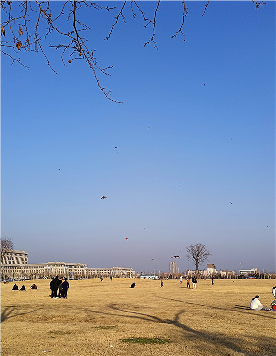 2月5日,我市天氣晴朗,不少市民帶著孩子來到戶外,享受溫暖的陽光、和煦的春風(fēng)、與孩子一起放紙鳶的天倫之樂。