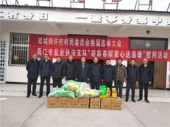 新春佳節(jié)來臨之際,為確保困難群眾過上一個(gè)歡樂喜慶文明祥和的春節(jié),2月7日,市鹽業(yè)執(zhí)法支隊(duì)黨委書記、支隊(duì)長(zhǎng)丁永華帶領(lǐng)班子成員到商水縣鄧城鎮(zhèn)許村開展扶貧幫扶、春節(jié)慰問活動(dòng),走訪慰問困難群眾,為他們送去米、食用油等慰問品,并送去黨和政府的關(guān)懷。