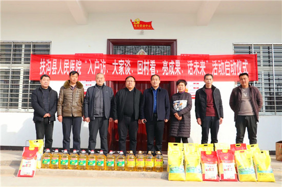 2月8日上午,扶溝縣人民醫(yī)院黨委書(shū)記、院長(zhǎng)何躍東,副院長(zhǎng)徐冰、王月鳳、齊建平,帶著米、食用油等慰問(wèn)品到曹里鄉(xiāng)刁灣村開(kāi)展“話(huà)脫貧、感黨恩、奮進(jìn)新時(shí)代”主題活動(dòng),送去新春的祝福。