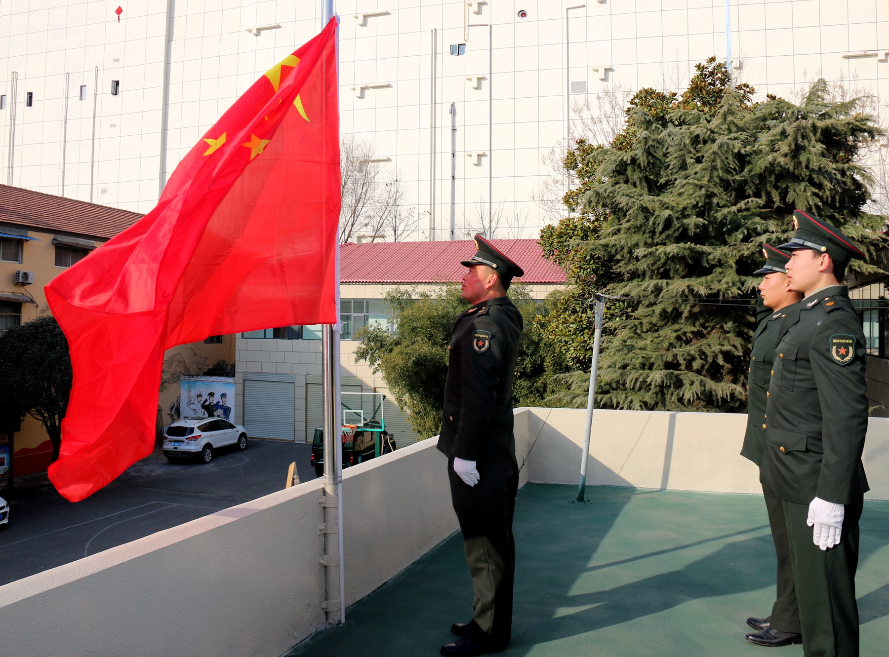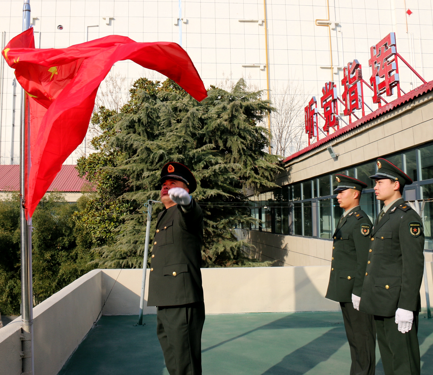 “起來,不愿做奴隸的人們……”,伴隨著激昂雄壯的《義勇軍進(jìn)行曲》,鮮艷的五星紅旗冉冉升起。2月12日8 時,河南省鹿邑縣人武部干部職工和文職人員士氣高昂、精神抖擻、昂首挺胸、軍容嚴(yán)整,在機(jī)關(guān)樓前整齊列隊(duì),舉行升國旗儀式。他們齊聲高唱國歌,莊嚴(yán)地向國旗行舉手禮,向偉大祖國、人民軍隊(duì)致以節(jié)日祝福和崇高敬意。