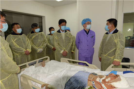 經(jīng)過一段時(shí)間的治療,張寧博的身體各項(xiàng)指標(biāo)都明顯好轉(zhuǎn),但尚未脫離危險(xiǎn),仍在醫(yī)院重癥監(jiān)護(hù)室救治。2月18日~19日,省公安廳黨委委員、副廳長、政治部主任高萬象,扶溝縣委書記孫紅偉等先后到鄭州大學(xué)第一附屬醫(yī)院ICU重癥監(jiān)護(hù)室,代表省公安廳黨委和扶溝縣委、縣政府看望慰問張寧博及其家屬。慰問中,他們要求醫(yī)護(hù)人員將生命放在第一位,不惜一切代價(jià),全力救治,精心治療。