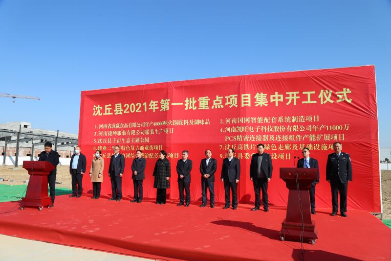 2月20日上午 ,沈丘縣舉行了2021年第一批重點(diǎn)項(xiàng)目集中儀式。此次集中開工項(xiàng)目共9個(gè),總投資57.57億元,2021年計(jì)劃投資26.2億元。