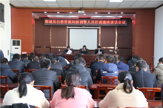 2月19日,鄲城縣自然資源局對新調(diào)整人員進(jìn)行任前廉政談話。會(huì)議由局辦公室主任潘梅主持。局黨組成員、副局長朱云英出席會(huì)議并講話。局機(jī)關(guān)各股室及各自然資源所中層干部參加會(huì)議。