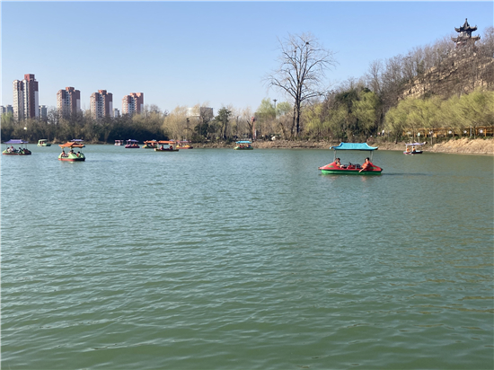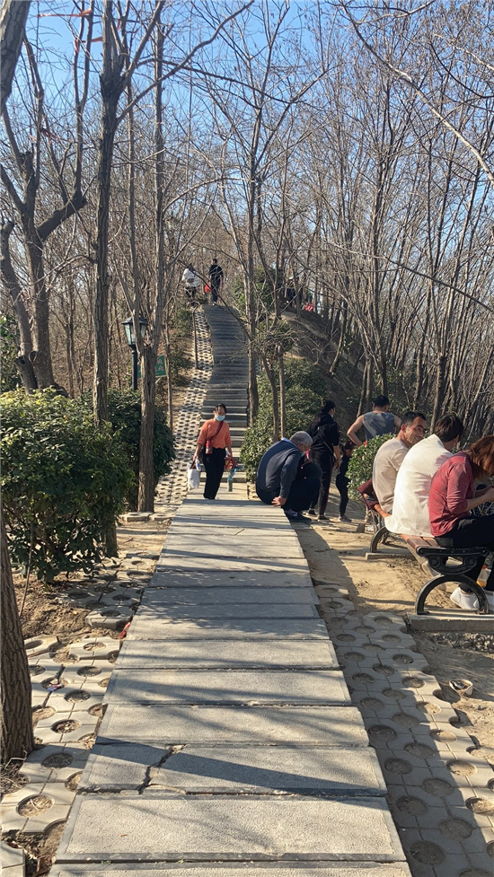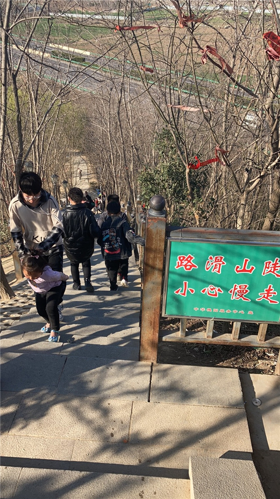 在槐香湖邊,年輕人三五結(jié)伴登上游艇,“坐船能到湖那邊的小島,島上也有槐樹,拍照肯定特別漂亮?!狈掂l(xiāng)大學(xué)生把七星島上的景色留在了自己的相機(jī)里。七星島與槐香湖相連的橋上,人潮擁擠,有的人席地而坐,觀賞著橋上的風(fēng)景。當(dāng)問道在外市工作的王先生游玩感受時(shí),他回答到:“年后上班沒時(shí)間鍛煉身體,今天我把全家人帶來登山,呼吸一下新鮮空氣?!雹?