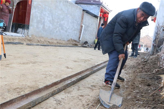在宋河鎮(zhèn)劉橋村,支部書記張殿魁正在帶領(lǐng)村民平整路面?!拔覀兇宓闹鹘值缼啄昵熬屯怂嗦?,但是部分小巷子因經(jīng)費(fèi)不足一直沒有修通。”張殿魁說,年初鎮(zhèn)黨委組織召開全鎮(zhèn)在外返鄉(xiāng)人士優(yōu)秀代表座談會(huì),得到了在外鄉(xiāng)賢的積極支持,部分鄉(xiāng)賢捐款,帶動(dòng)村內(nèi)群眾籌集費(fèi)用,現(xiàn)在水泥路即將覆蓋全村大街小巷。