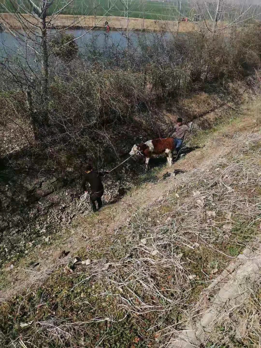 接警后,距離事發(fā)地點最近的周口高速二大隊項城中隊值班民警迅速趕往現(xiàn)場。民警到達現(xiàn)場后了解到,一輛專業(yè)運輸肉牛貨車從北方到南方運輸肉牛,有兩頭牛在行駛途中突然受驚撞破了車上鋼管圍欄跳到了高速公路上,其中一頭又越過中央隔離護欄跑到了對向車道。一輛行駛中轎車躲避不及與牛發(fā)生碰撞,導致車輛嚴重損壞,牛被撞死。另一頭沿著高速公路護欄來回折騰著跑,過路車輛紛紛躲避,形勢也十分危險。民警立即指揮來車暫停,招呼司機等人把牛趕下高速公路邊溝,減少危險,然后分段站在護欄處把守,讓有捉牛經(jīng)驗的車主和司機在邊溝內(nèi)捉牛。