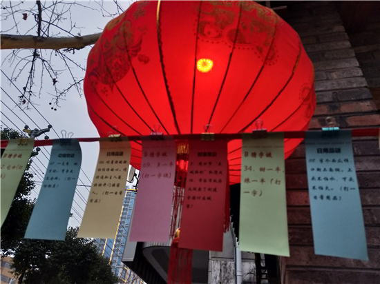 在元宵佳節(jié)到來(lái)之際,為倡導(dǎo)文明過(guò)節(jié)理念,營(yíng)造和諧節(jié)日氛圍,2月26日晚,在交通大道與文明路交叉口西北角市民驛站舉行的趣味元宵節(jié)猜燈謎活動(dòng)贏得了市民的熱情參與。