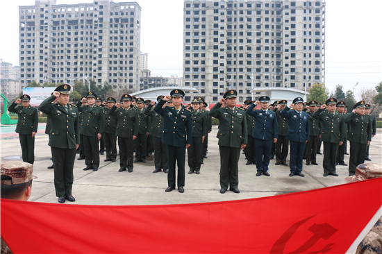 2月26日下午14時,西華縣人武部營區(qū)內(nèi),鮮紅的黨旗迎風(fēng)飄揚。來自全縣17個鄉(xiāng)鎮(zhèn)、5個城區(qū)辦事處武裝部的全體專武干部黨員與該部現(xiàn)役干部、文職、職工黨員共計60余人集聚這里,隆重集體過“政治生日”。