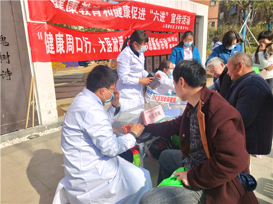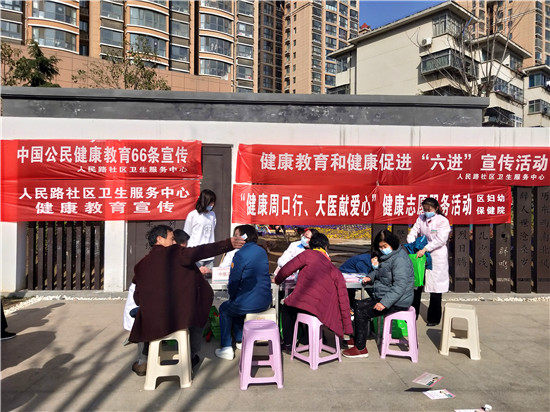 3月2日下午,在大慶路與七一路交叉口東北角的街頭游園內(nèi),人民路社區(qū)衛(wèi)生服務中心在這里開展健康教育和健康促進“六進”宣傳活動?;顒蝇F(xiàn)場,量血壓、測血糖、免費體檢等服務,讓周邊居民體會到滿滿的關(guān)懷。