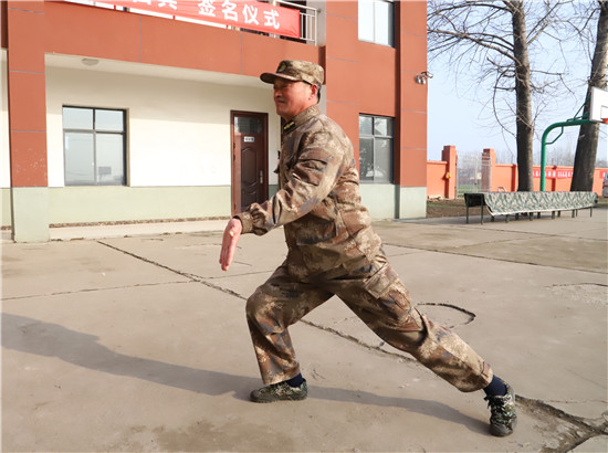 同時(shí),王成華也很幽默,深受準(zhǔn)新兵的喜愛(ài),“在這個(gè)隊(duì)伍里,說(shuō)不定你的爸爸當(dāng)年當(dāng)兵時(shí)就是我訓(xùn)練的。起初,大家叫我‘王班長(zhǎng)’,后來(lái)叫我‘老班長(zhǎng)’,現(xiàn)在叫我‘班長(zhǎng)王’,是不是覺(jué)得我太老了?來(lái),我給大家打一套軍體拳!不服的上來(lái)試試?!?/p>