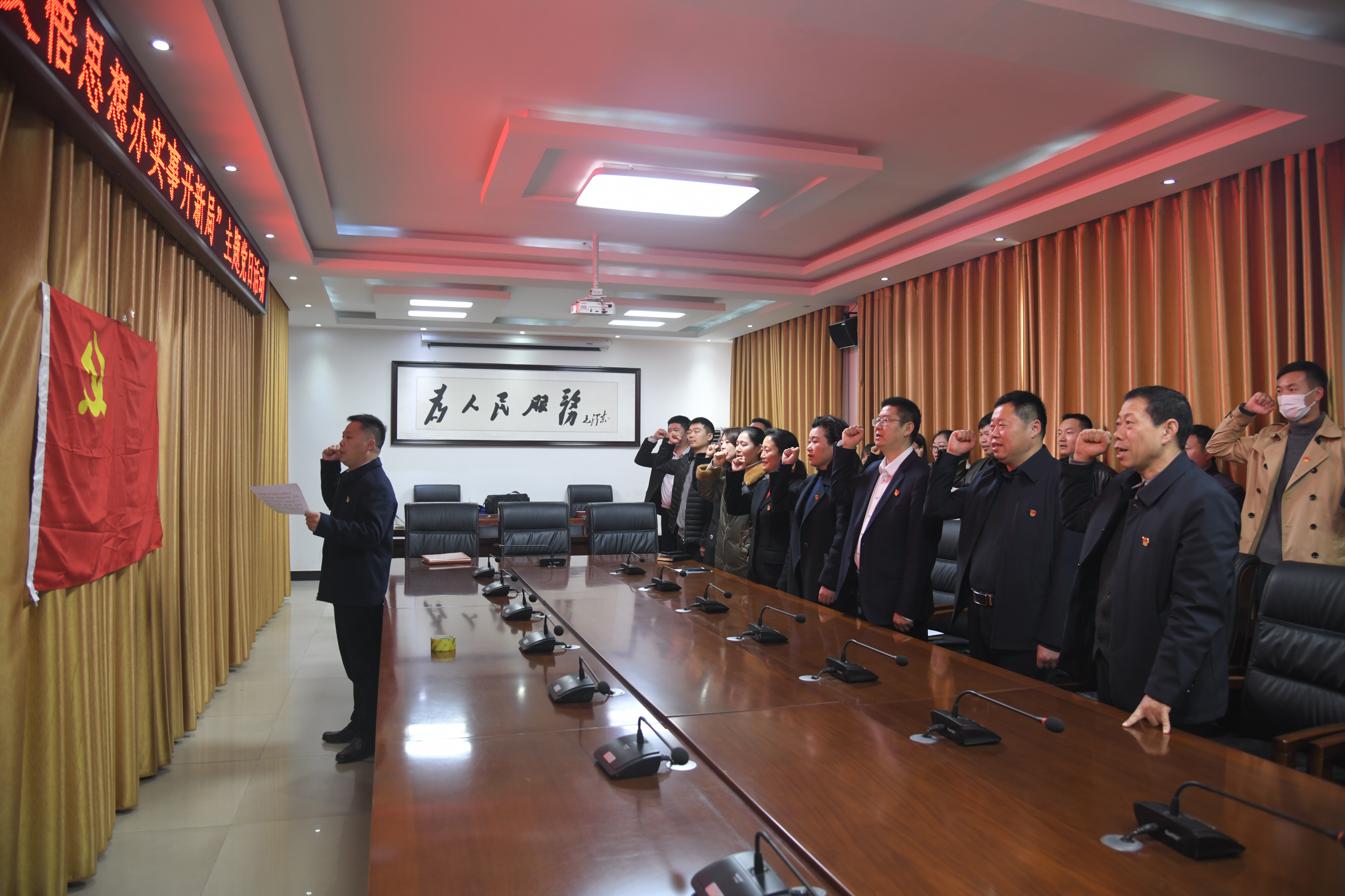 會前,李本磊和全體人員一起重溫入黨誓詞。