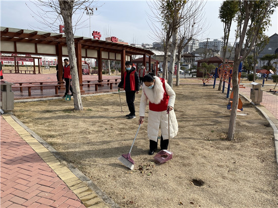 活動中,辦事處志愿者拿著垃圾袋、掃帚等工具按照區(qū)域分工積極行動,他們發(fā)揚不怕苦、不怕臟的精神,對游園內(nèi)的落葉、雜草、垃圾等進行全面清理打掃,經(jīng)過大家辛苦勞動,復(fù)興街游園衛(wèi)生煥然一新,得到了居民的贊揚。