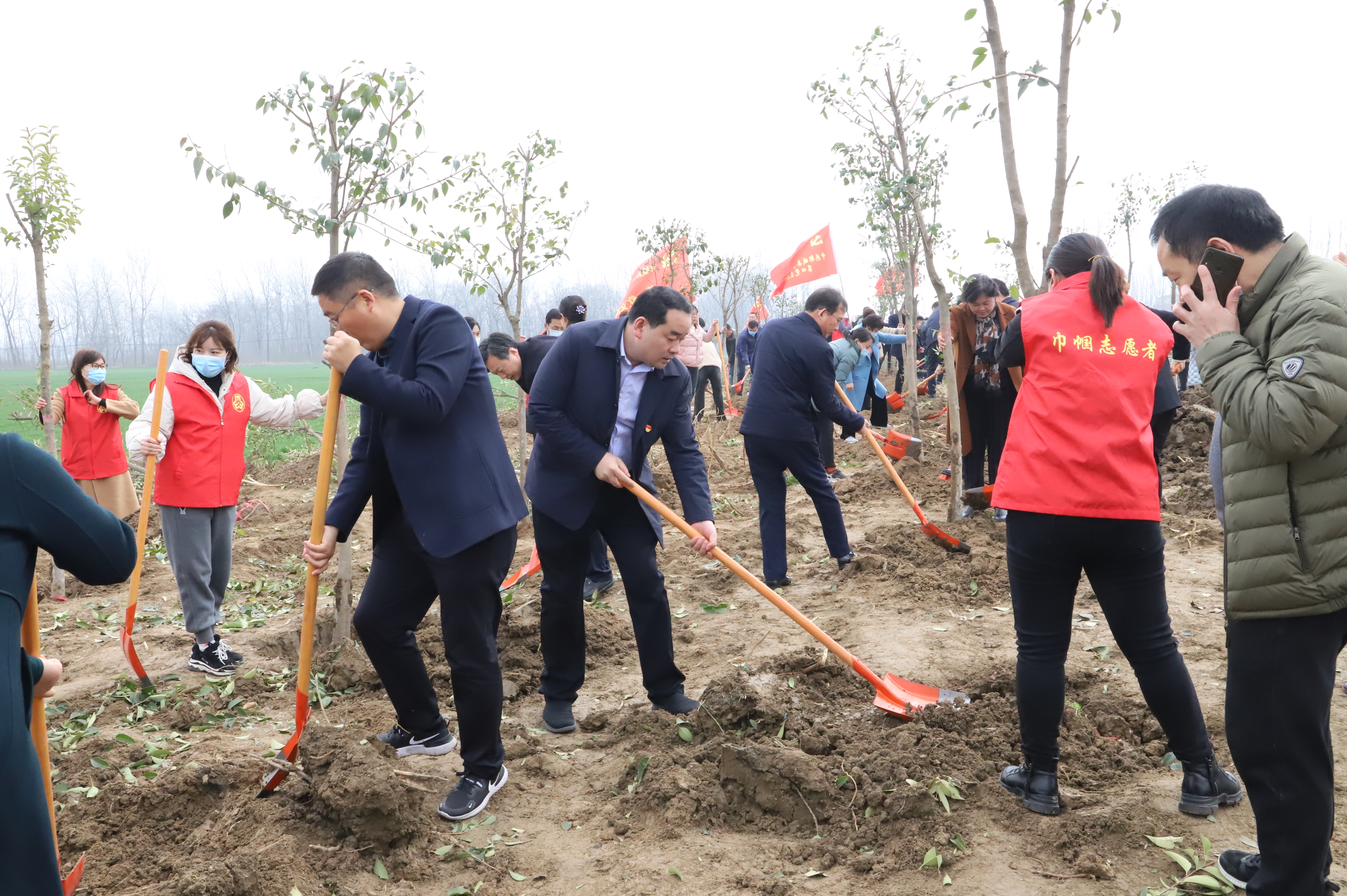 草長鶯飛,春回大地。3月12日,在第43個植樹節(jié)之際,全市掀起義務(wù)植樹熱潮,黨員干部、志愿者、市民踴躍參與義務(wù)植樹活動。扶正樹苗、揮鍬培土、分層踩實、堆起圍堰、提水澆灌,認真地完成著每一道工序,栽下了一棵棵樹苗,為改善生態(tài)環(huán)境、綠化美麗家園種下了一棵棵綠色的希望。圖為鄲城縣義務(wù)植樹現(xiàn)場。