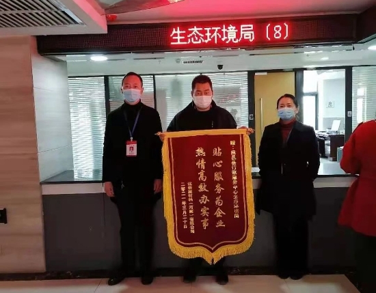 “感謝鹿邑生態(tài)環(huán)境分局為我們公司提供的高效快捷服務(wù),感謝局工作人員的耐心指導(dǎo)和高效服務(wù)?!苯?,位于鹿邑縣產(chǎn)業(yè)集聚區(qū)內(nèi)的優(yōu)奈新材料(河南)有限公司負(fù)責(zé)人劉攀,帶人將寫(xiě)有“貼心服務(wù)為企業(yè),熱情高效辦實(shí)事”的一面錦旗送至縣行政服務(wù)中心市生態(tài)環(huán)境局鹿邑分局辦事窗口,對(duì)鹿邑環(huán)保人為企業(yè)提供的優(yōu)質(zhì)服務(wù)表示感謝。