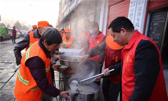 “謝謝黨和政府、工會組織對我們的關(guān)懷。”項城市文明路愛心粥屋前,環(huán)衛(wèi)工閆愛云端著剛剛盛好的暖心粥開心地說。