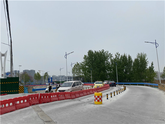 在大慶路橋南、北兩個上橋口,已安裝了高為2.2米的限高桿,施工路段的東側(cè)修有4個車道的便道,各車道中間設(shè)有臨時護欄,低于2.2米的車輛可以通行。值得提醒的是,該路段早、晚高峰期時較為擁堵,希望市民提前繞行(可繞行至中原路、八一大道)。