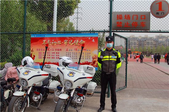 4月16日,鄲城一高舉行第12屆18歲成人儀式暨奠基高考決勝2022誓師大會。鄲城縣公安局副局長朱衛(wèi)兵率領(lǐng)交警鐵騎隊兵分4路,從早上7時至上午11時在學(xué)校周圍維護交通秩序,確保數(shù)千名家長的車輛有序停放,疏堵保暢。