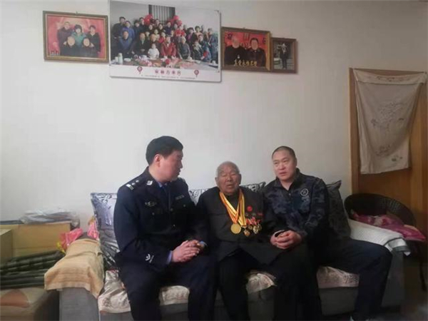 一大早,該所黨員民警身著戎裝,排著整齊的隊(duì)伍,分別前往荷花路派出所轄區(qū)的閆莊社區(qū)、荷花社區(qū)、前王營(yíng)等社區(qū),探望慰問(wèn)年逾花甲的抗戰(zhàn)老英雄,聆聽(tīng)他們?cè)诳箵羟致缘膽?zhàn)斗歲月里浴血奮戰(zhàn)、不屈不撓的感人故事。在戰(zhàn)斗英雄尤洪亮家中,民警深切感受了那場(chǎng)保家衛(wèi)國(guó)反擊戰(zhàn)的慘烈,看到了新時(shí)代最可愛(ài)的人。