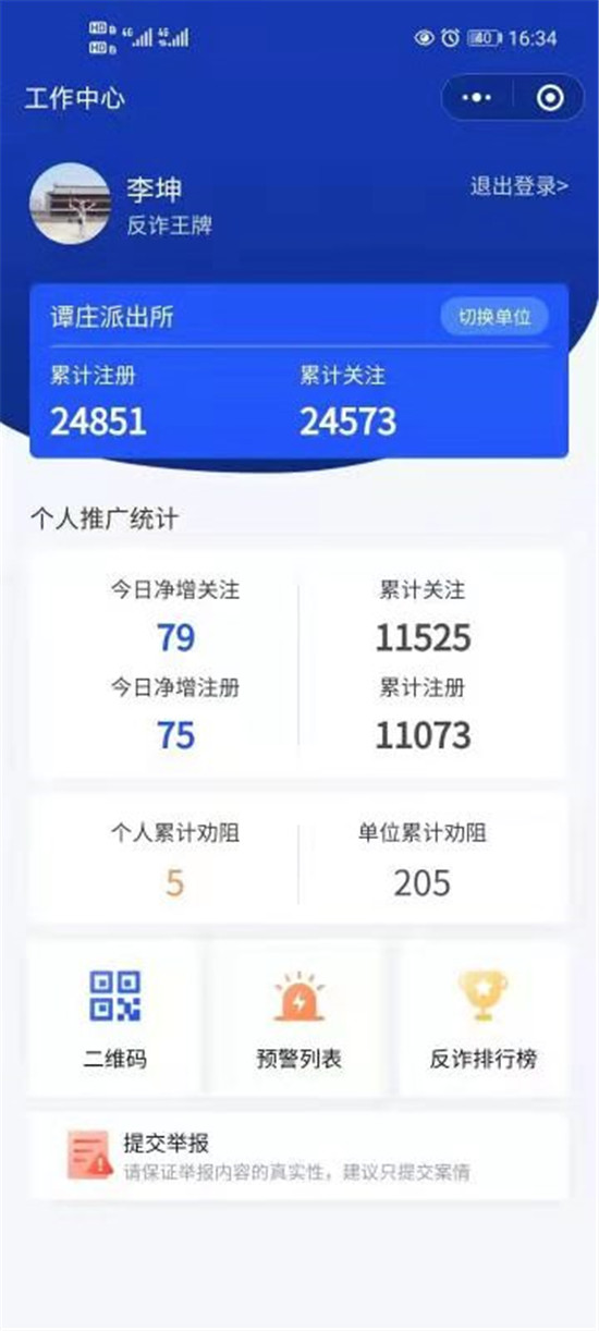 今年2月,商水縣公安局開始利用“金鐘罩”預(yù)防電信詐騙活動。在譚莊派出所多年的李坤拿著分配給自己的二維碼,做個小牌子掛到脖子上,開始他的“金鐘罩”宣傳注冊工作。轄區(qū)企事業(yè)單位、村莊、群眾文化廣場、KTV、網(wǎng)吧、超市、洗浴中心等人員密集場所是他必須進的地方,見親戚說、逢朋友講,三句話離不開“金鐘罩”反詐騙宣傳。