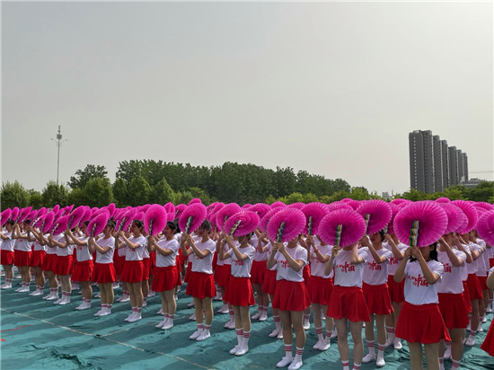 開幕式還舉行了彩扇舞、啦啦操、中國功夫、歌曲等文體表演。其中,彩扇舞《盛世花開》,由該校文化教育學(xué)院300名女生手持彩扇,跟隨著不同的音樂節(jié)奏變換著不同的色彩與隊形,依次拼出由鐮刀和錘頭組成的中國共產(chǎn)黨黨徽、象征體育精神的奧運五環(huán)、“慶祝建黨100周年”、“周職20周年校慶”等圖形和字樣,表達著對黨的熱愛和對學(xué)校的祝福。表演者王真真說:“大家協(xié)同配合才能把節(jié)目表演好,這個節(jié)目我們排練了一個多月。雖然很辛苦,但是看到節(jié)目順利演出,感到很有成就感?!?/p>