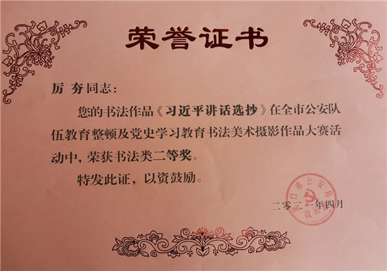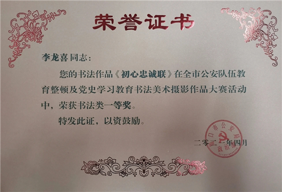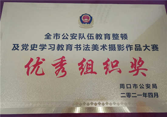 扶溝縣公安局在全市公安隊(duì)伍教育整頓及黨史學(xué)習(xí)教育書法美術(shù)攝影作品大賽中取得優(yōu)異成績