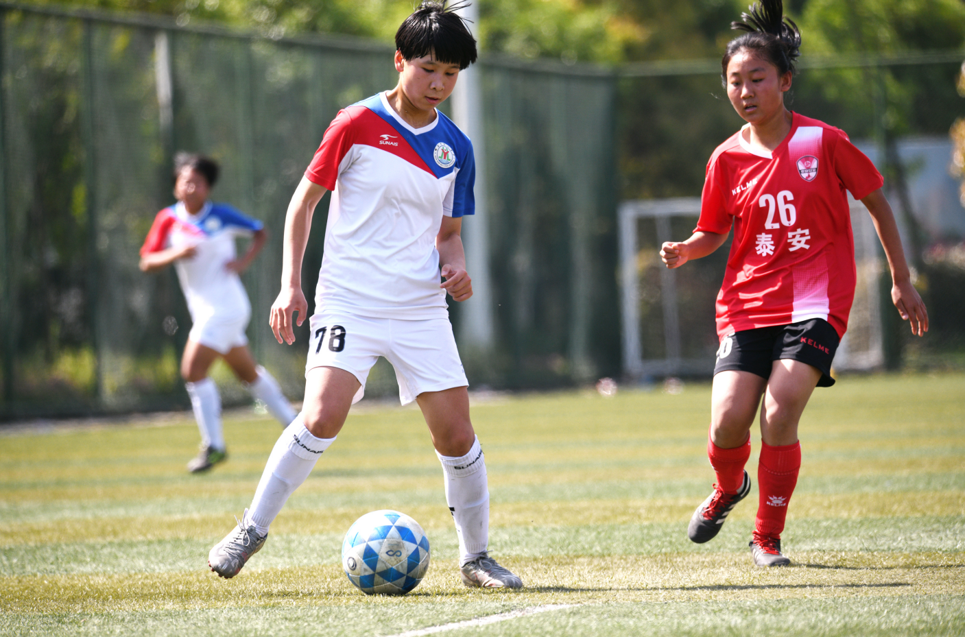 5月1日上午9時(shí),周口“協(xié)會杯”全國青少年女子足球邀請賽在市體育中心開賽,來自國內(nèi)的濟(jì)南、邯鄲、泰安、洛陽、鄭州、周口、濟(jì)源的10支青少年女子足球隊(duì)參與角逐,賽事分為U14初中組和U16高中組兩個(gè)組別的比賽,其中初中組為4個(gè)隊(duì),高中組為6個(gè)隊(duì),初賽實(shí)行小組循環(huán)淘汰賽,周口豐厚女子足球隊(duì)參與了高中組的比賽。1日上午的揭幕戰(zhàn)中,兩組比賽同時(shí)進(jìn)行,U14初中組的比賽是泰安隊(duì)對陣邯鄲隊(duì),U16高中組的比賽是洛陽單項(xiàng)體校隊(duì)對陣濟(jì)源一中隊(duì)。比賽非常激烈,展示了青少年女足越來越專業(yè)化的風(fēng)格。