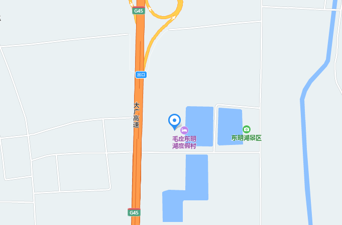 開著車、全家兜風(fēng)、免費(fèi)登上大廣高速、到扶溝大新口下、向東一兩公里就能看到:東明湖度假村。