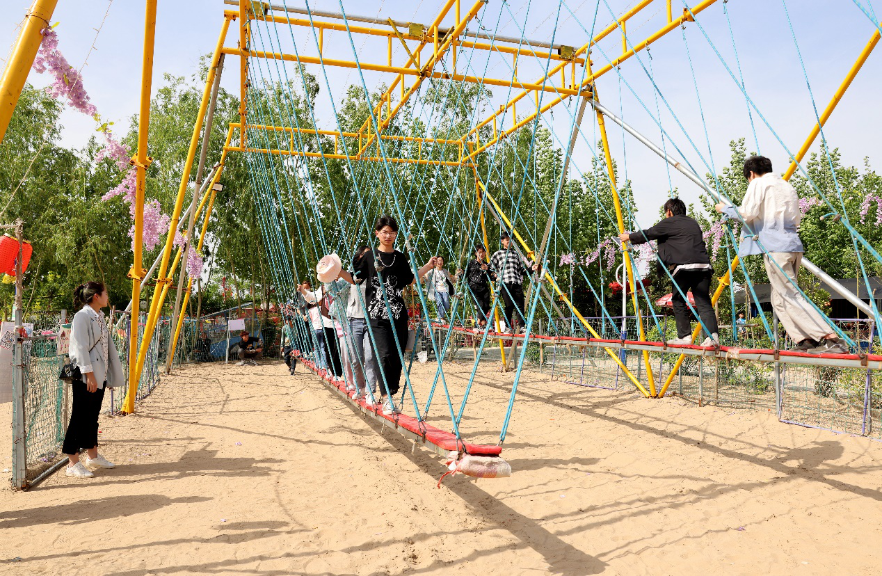 這個(gè)度假村建于2020年初,占地100多畝,擁有50多項(xiàng)娛樂休閑項(xiàng)目,包括蒙古包、農(nóng)家院等,整個(gè)游樂場處于沙灘之中,萬里平原之中的沙灘風(fēng)情更有韻味。來看看這里都有啥好玩的?