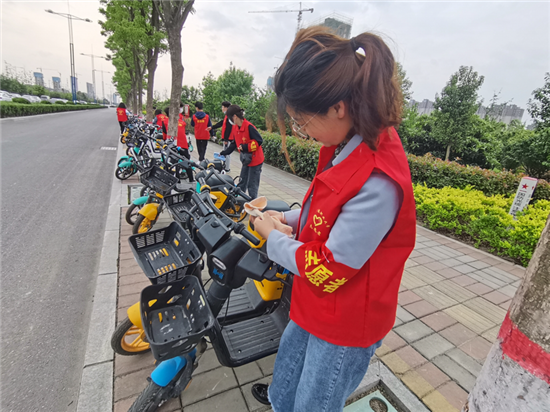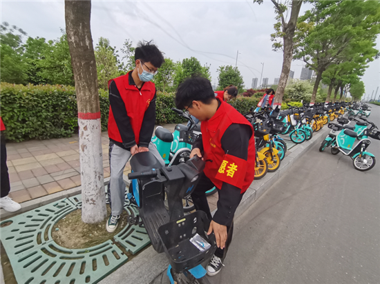 當(dāng)天上午,由河南科技職業(yè)大學(xué)志愿者組成的綠色低碳騎行隊(duì)伍,從河南科技職業(yè)大學(xué)正門出發(fā)騎行,用實(shí)際行動宣傳愛護(hù)地球、倡導(dǎo)綠色騎行的理念。騎行結(jié)束后,志愿者們組成宣傳引導(dǎo)隊(duì)伍,走上大街,引導(dǎo)、糾正共享單車規(guī)范停放,對不規(guī)范停放的共享單車進(jìn)行整齊擺放,清理共享單車上亂張貼的小廣告,繼續(xù)開啟當(dāng)日第二場共享單車宣傳引導(dǎo)志愿服務(wù)活動。