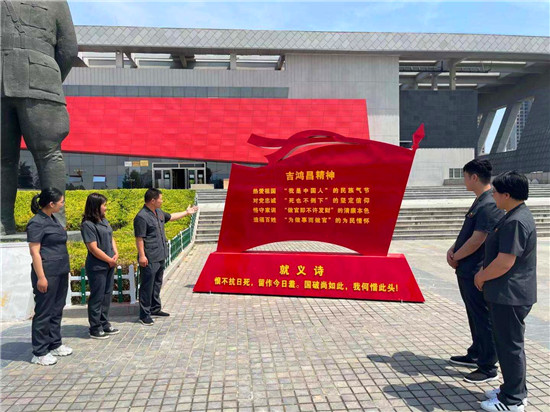 1934年11月9日,吉鴻昌將軍在天津開(kāi)展地下工作時(shí)不幸被捕。在獄中,他受盡嚴(yán)刑拷打,但始終堅(jiān)貞不屈。11月24日13時(shí)30分,吉鴻昌在刑場(chǎng)上以樹(shù)枝作筆、以大地為紙,寫下了蕩氣回腸的就義詩(shī):“恨不抗日死,留作今日羞。國(guó)破尚如此,我何惜此頭?!庇枚虝憾滟F的生命詮釋了一名共產(chǎn)黨員的初心和使命。