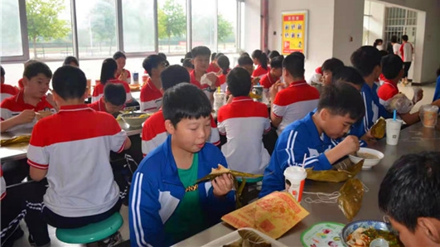 • 6月14日,端午節(jié),鄲城縣第二實驗中學(xué)朱玉良、李繼元等校領(lǐng)導(dǎo)在餐廳和學(xué)生一起集體過端午。