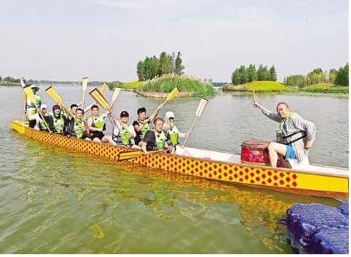 • “咚咚咚……”近日,市城鄉(xiāng)一體化示范區(qū)引黃調(diào)蓄湖水面上水花翻涌,激昂的鼓點破空而來。2025“國緣杯”周口市第十屆中華龍舟賽的參賽隊伍正在進行最后的沖刺訓(xùn)練。