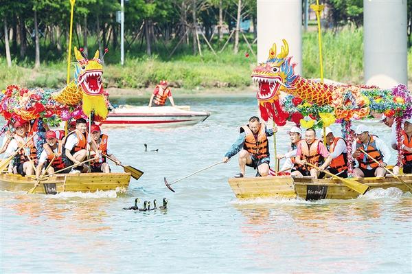 • 6月20日上午,周口市第八屆中華龍舟賽激烈進行中。當日,河南省第十一屆中華軒轅龍舟大賽暨周口市第八屆中華龍舟賽在周口市水上運動中心開賽。賽前,水上拔河、翎船捕鴨等傳統(tǒng)表演讓觀眾大飽眼福。